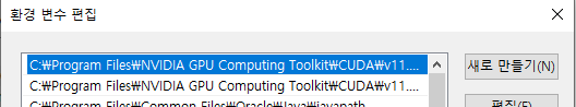 위에서 cuda 의 설치 경로를 기본으로 하셨으면, C 드라이브의 C:\Program Files\NVIDIA GPU Computing Toolkit\CUDA\v11.0 경로에 "bin", "include", "lib"의 세 폴더가 표시됩니다. 이를 확인하신 후 제어판> 시스템 및 보안> 시스템 > 고급 시스템 설정