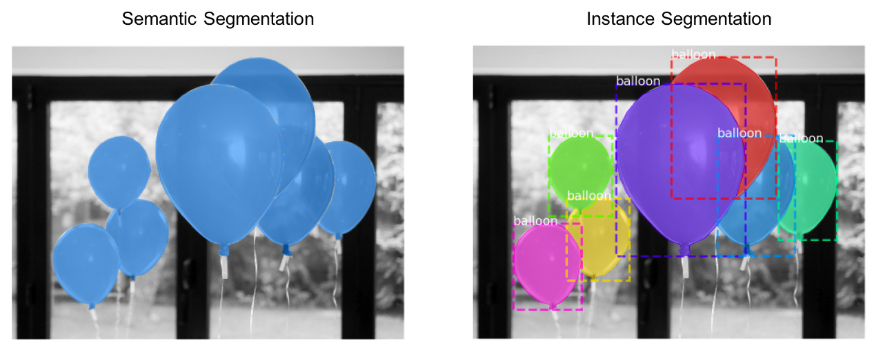 반면 Segmentation은 Bounding Box(테두리 박스)없이 객체의 포토샵 누끼를 따듯 경계선을 정확히 분할합니다. 위의 사진에서는 Instance Segmentation으로 언급되어 있지만, 정확히는 Semantic Segmentation입니다.